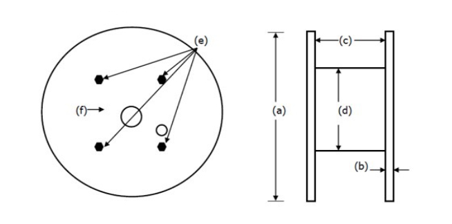 | Makara Tipi | Flanş Çapı (mm) (a) | Flanş Kalınlığı (b) | Gergi Arası Mesafe (c) | Göbek Çapı (d) | Saplama Sayısı (e) | Mil Çapı (mm) (e) | Pul | Göbek çapı (f) |